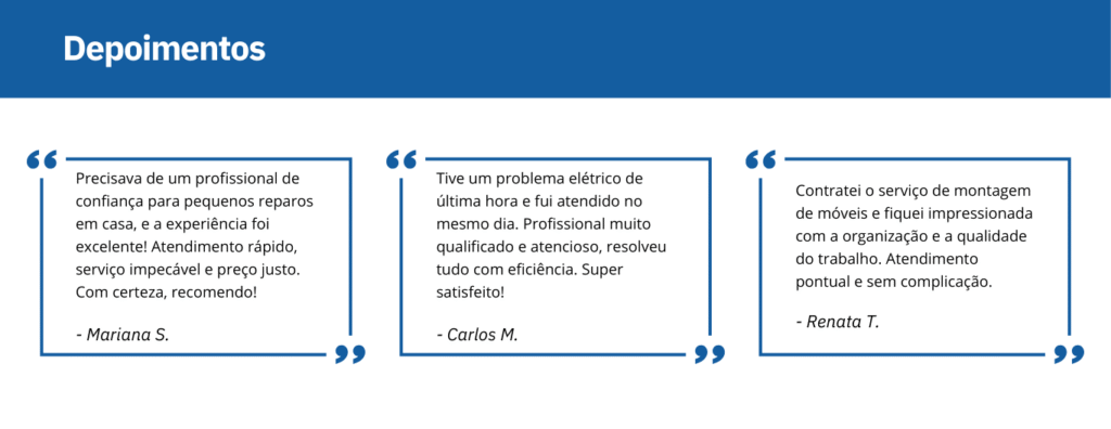 Cada reparo, instalação ou manutenção que realizamos é feito com dedicação e responsabilidade. Nosso objetivo é simplificar seu dia a dia, garantindo segurança e eficiência em cada detalhe.